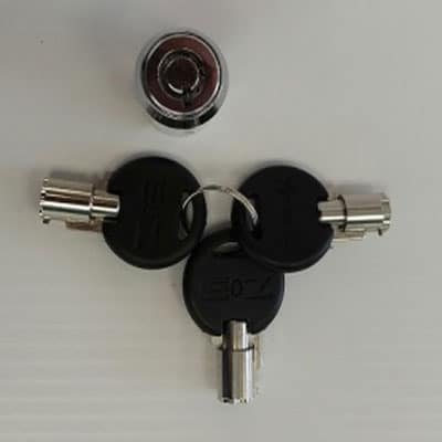 Cylindre de sécurité laiton chromé, broche haute sécurité anticrochetage. Ferme efficacement votre box sans risques d’accrochage au passage.